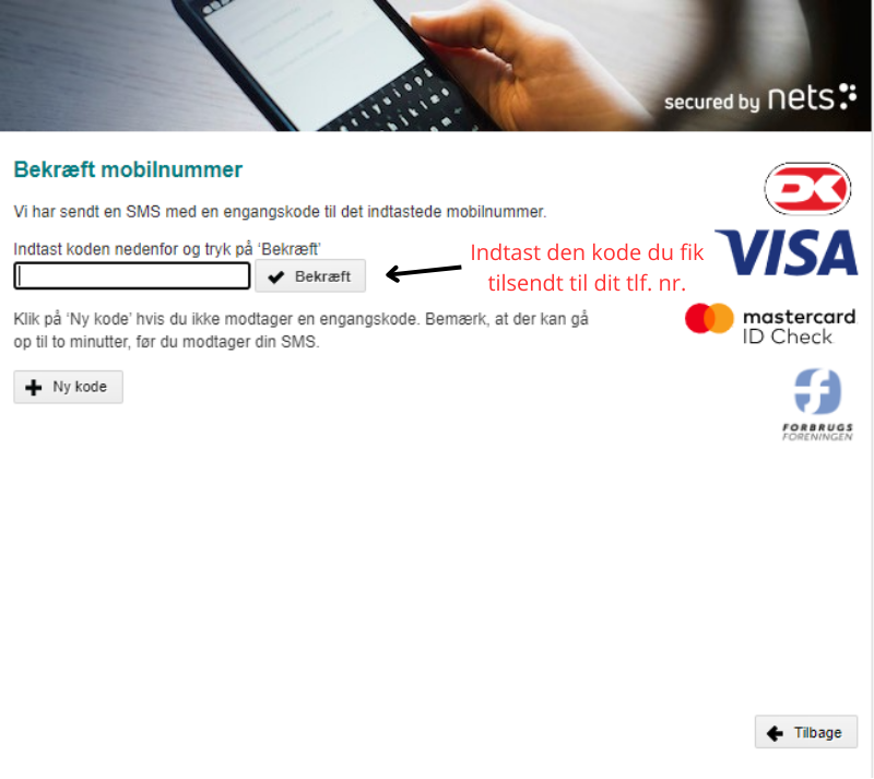 11. Du vil nu have fået tilsendt en kode til det telefonnummer, du indtastede i det tidligere vindue.